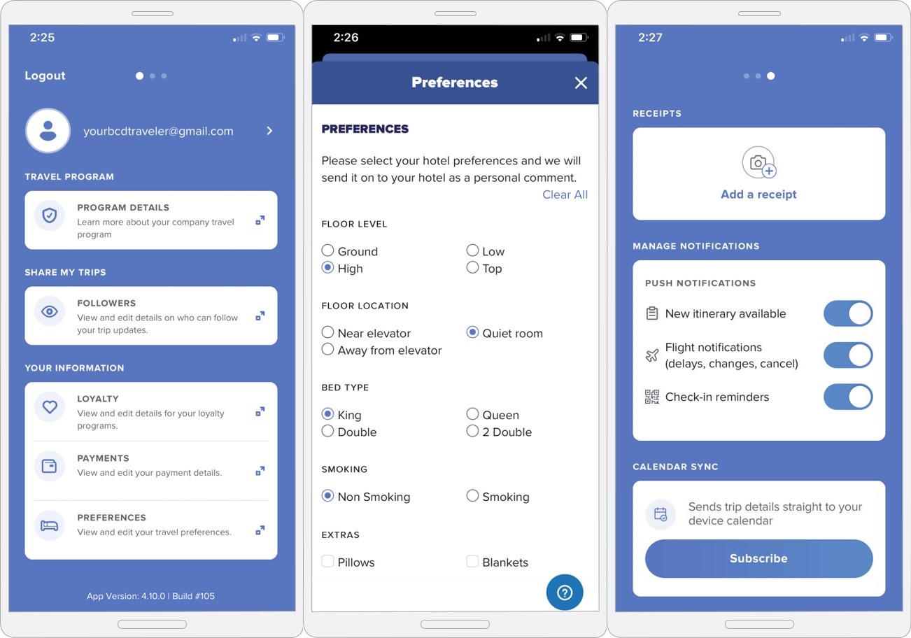 Wir haben TripSource entwickelt, damit BCD-Reisende ihre gesamte Reise an einem einzigen Ort verwalten können. Mit den Funktionen, die für sie wichtig sind – Komfort, Personalisierung und jederzeitiger Zugriff. Und mit den Zielen, die für Sie wichtig sind – Compliance, Ausgabenmanagement und Sicherheit. TripSource ist eine umfassende Reisemanagement-Plattform und -App für Reisende und Reisebesteller.