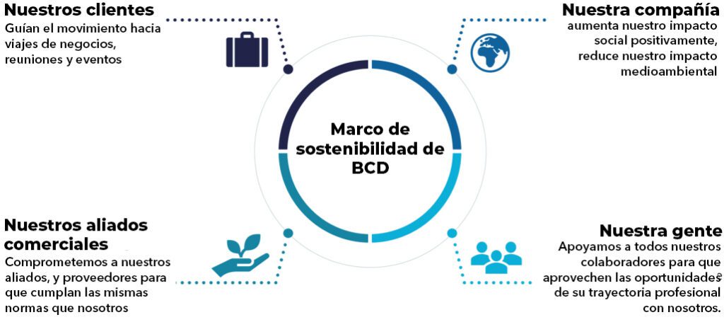 BCD Travel ha sido reconocida durante mucho tiempo como la TMC líder en el área de la sostenibilidad. Nuestra calificación Platinum EcoVadis, las oficinas y los sistemas con certificación ISO y el compromiso de larga data con el Pacto Mundial de las Naciones Unidas y los Objetivos de Desarrollo Sostenible de las Naciones Unidas nos han diferenciado de nuestros competidores como una empresa que se toma la sostenibilidad en serio. A medida que aumenta la urgencia de la crisis climática y los impactos en las personas y la naturaleza se vuelven más marcados, ahora es el momento de llevar nuestros compromisos y acciones de sostenibilidad al siguiente nivel. Debemos asegurarnos de que, como empresa, somos un socio responsable, responsable y ético, y que usamos el poder de nuestras redes para influir en un sector de viajes de negocios más sostenible, uno que genere un valor significativo para quienes viajan, aporta beneficios tangibles a las personas y los lugares que acogen a los viajeros, y minimiza su impacto en el medio ambiente. La sustentabilidad se trata de hacer el tipos de elecciones hoy que aseguren el bienestar de las generaciones del mañana. Es un viaje, no un destino. A medida que evolucione nuestra comprensión de los desafíos y surjan nuevas tecnologías, también lo harán nuestro enfoque y nuestras prioridades.