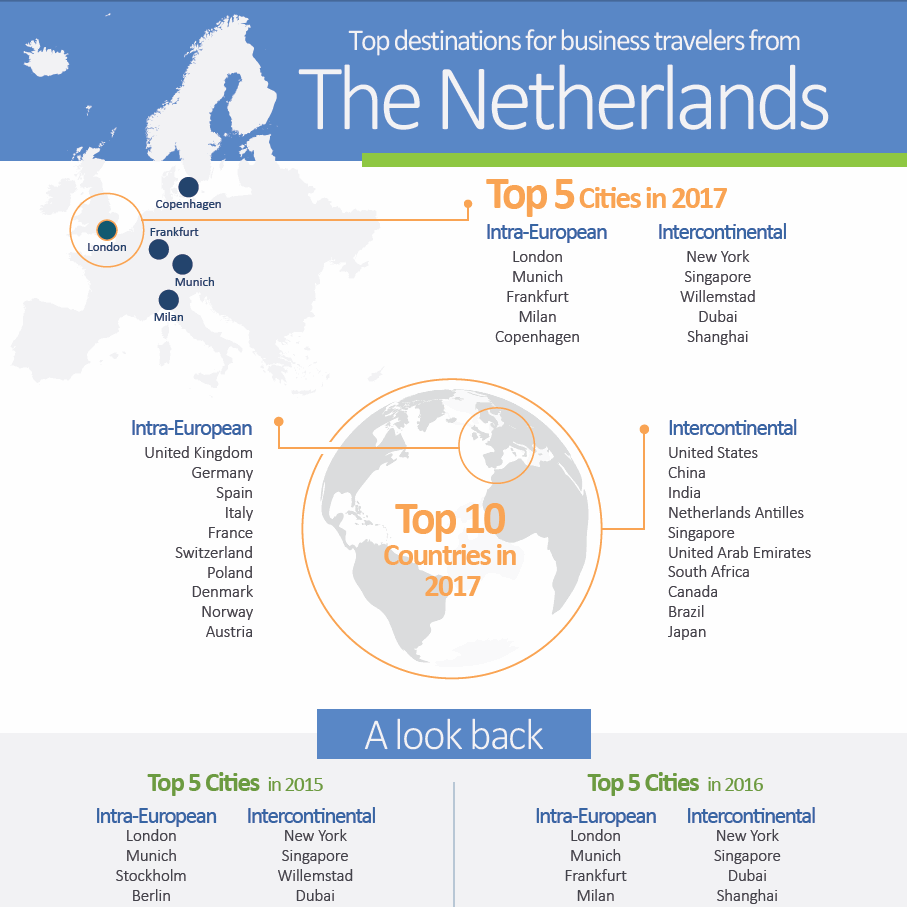 Top destinations for business travelers from The Netherlands