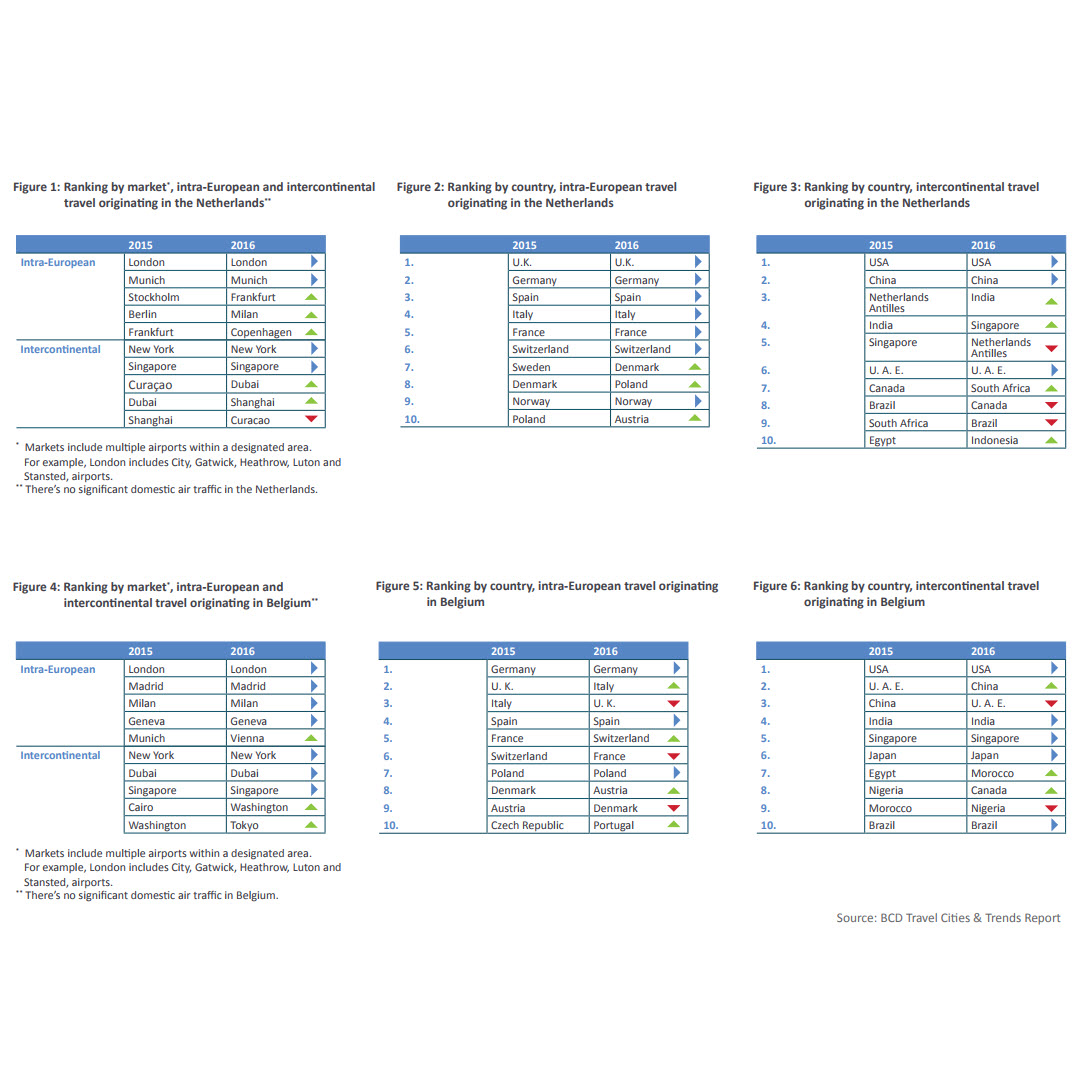 Top destinations for business travelers from Belgium, The Netherlands and Luxembourg