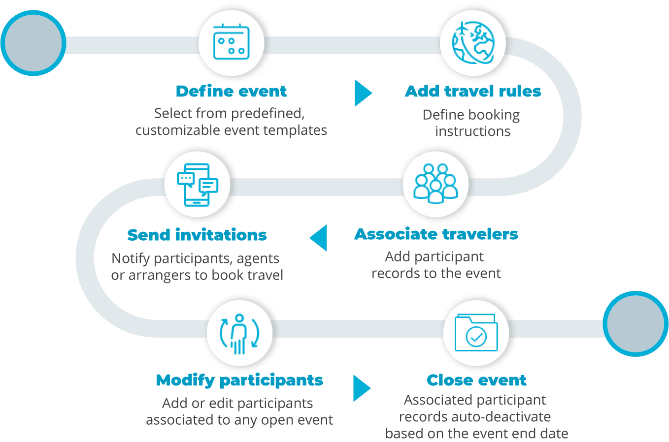 - Trip request details are managed electronically to improve the travel management experience for event participants, arrangers and agents.