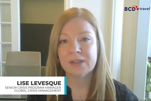 Lise Levesque, Senior Crisis Program Manager Global Crisis Management, talks about a broader set of risks, one of the top 8 business travel trends BCD identified for 2022. Watch the video now!