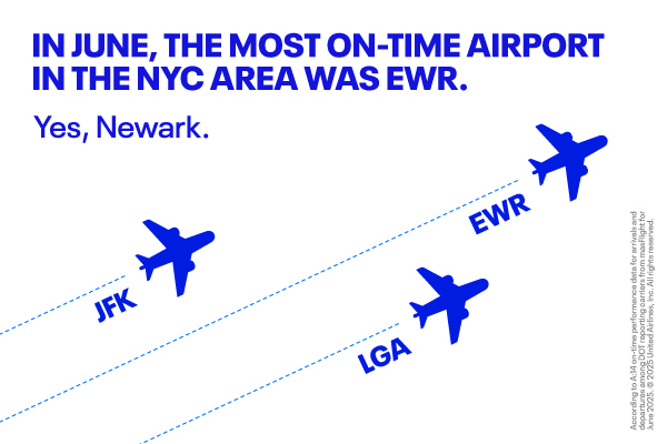 Newark was the most on-time airport in the NYC area in June. United’s collaboration efforts with the FAA and other local/airport authorities have expedited the path to increased reliability.